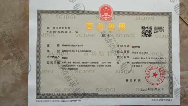 | 营业期限-截止: | 2033年01月09日 | 发照机关: | 绍兴市柯桥区市场监督管理局 |